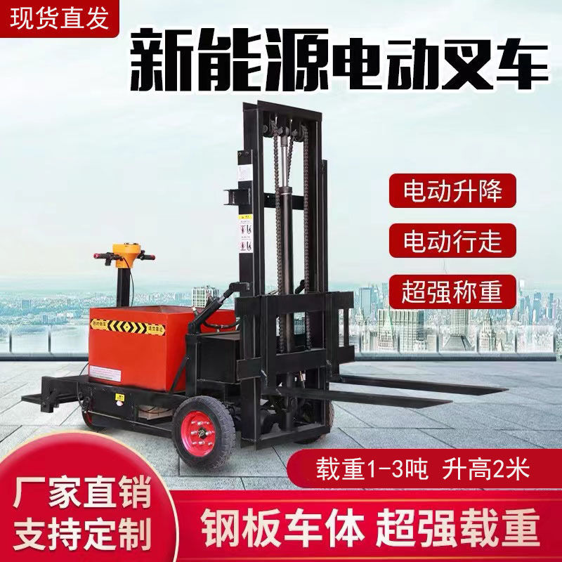 高碑店市小型电动叉车1吨站驾式2吨液压升高铲车全自动仓储堆高车